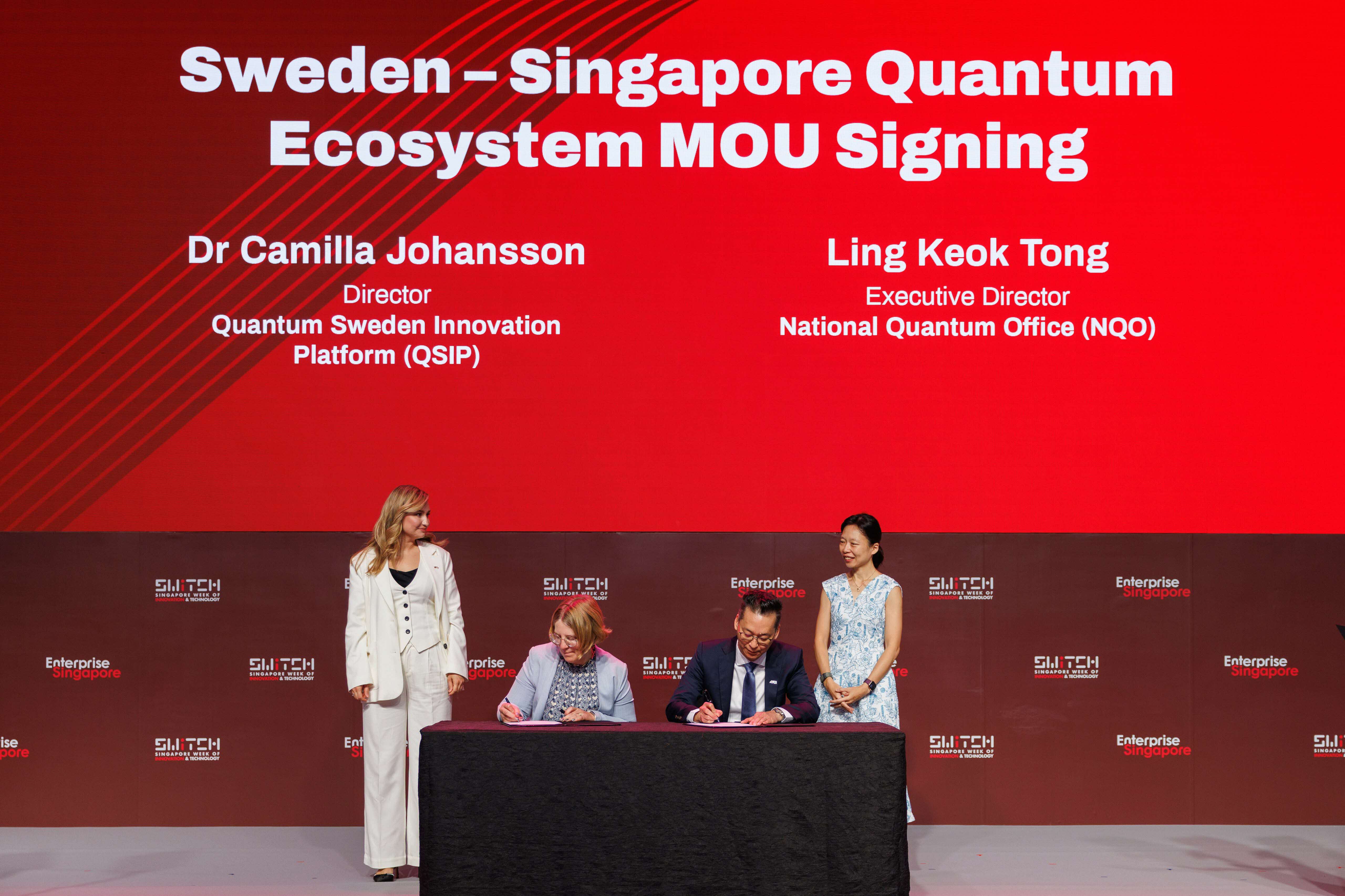 Avtalet undertecknas i Singapore av Mr. Ling Keok Tong, VD för NQO, som representerar Singapores kvantekosystem, samt Dr. Camilla Johansson, Föreståndare för Quantum Sweden Innovation Platform (QSIP), som företräder de elva svenska forskningsaktörerna. Signerandet bevittnades på plats av Sveriges Energi- och näringsminister Ebba Busch och Jasmin Lau, biträdande minister, Ministeriet för digital utveckling och information samt Utbildningsdepartementet i Singapore.